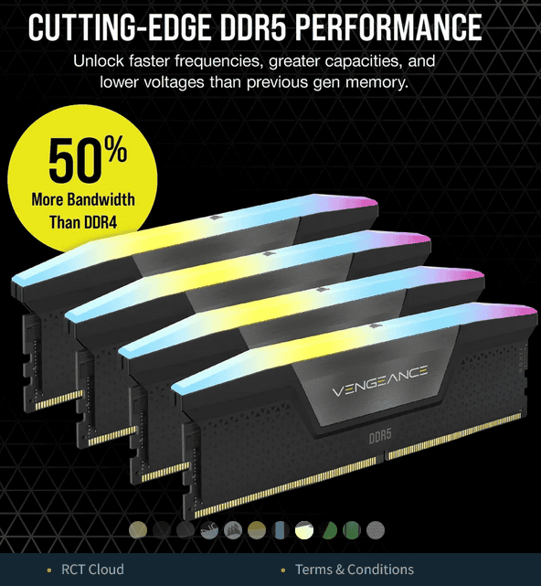 Corsair Vengeance RGB DDR5 128GB RAM 5600MHz CL40 – 4x32GB Memory Stick